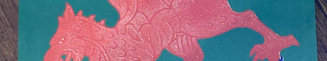 Jamie Reid artwork for Anhrefn’s album ‘Dragon’s Revenge’ 1990