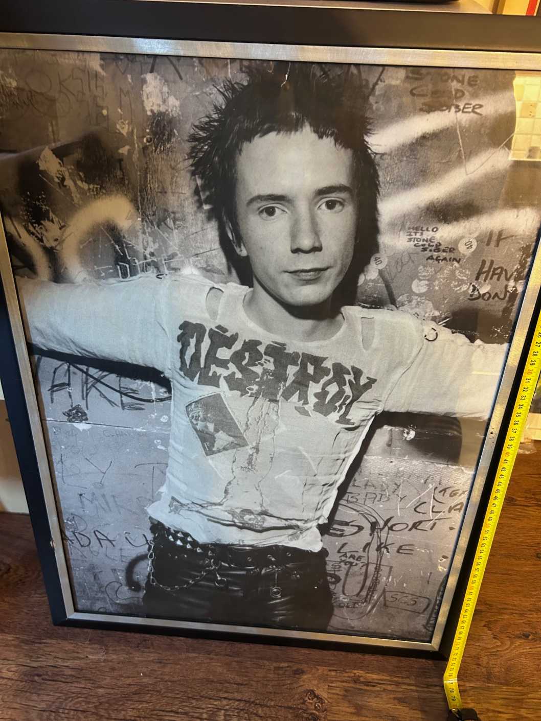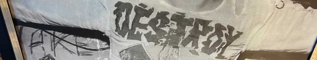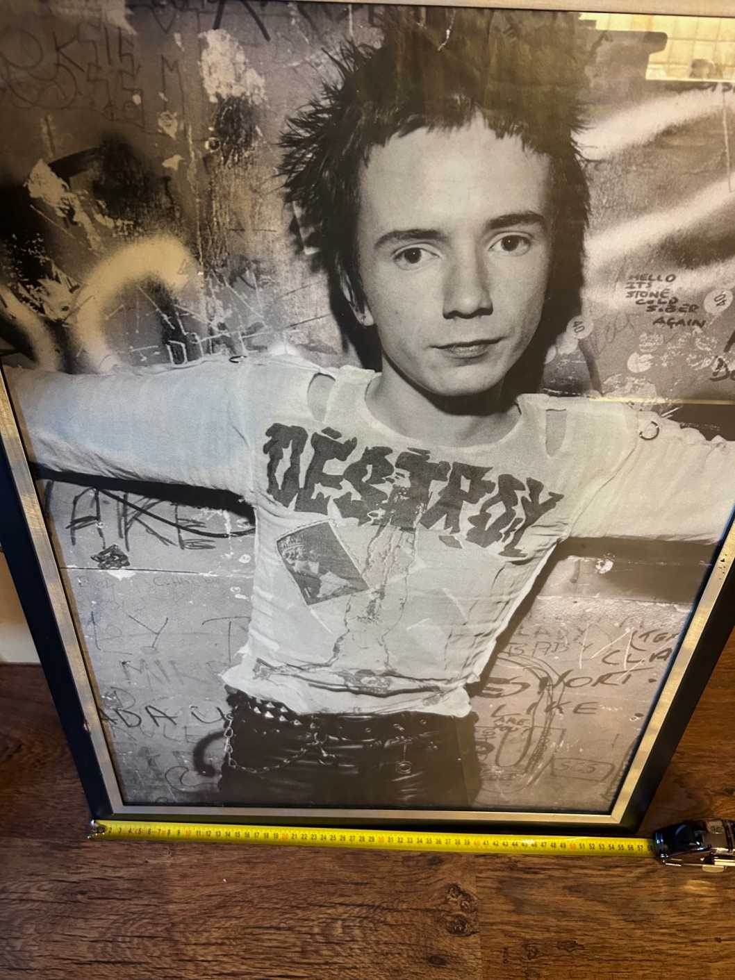 Taken by renowned photographer Dennis Morris in 1977, this is one of the iconic photos of Johnny Rotten and features him wearing a Destroy T-Shirt.